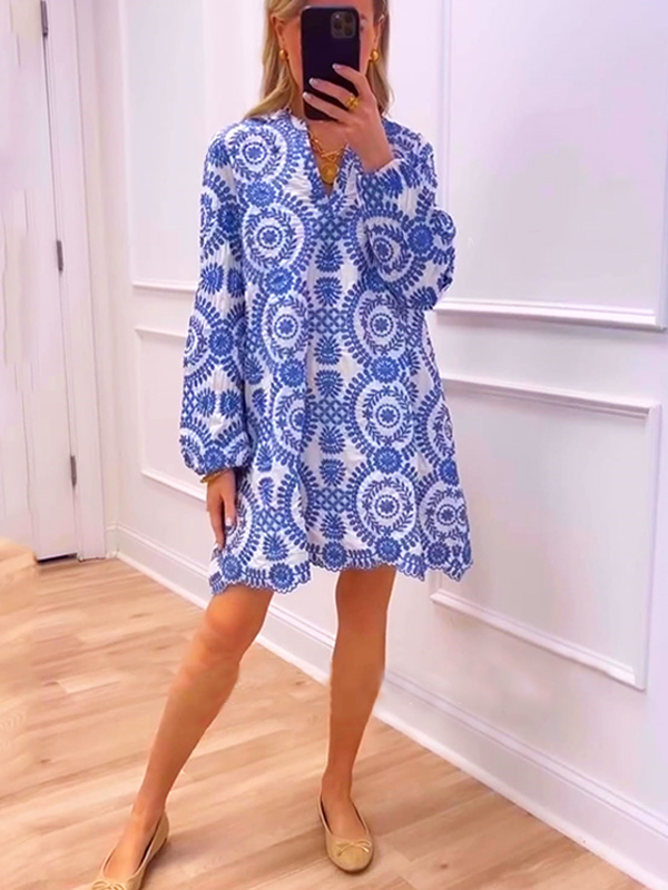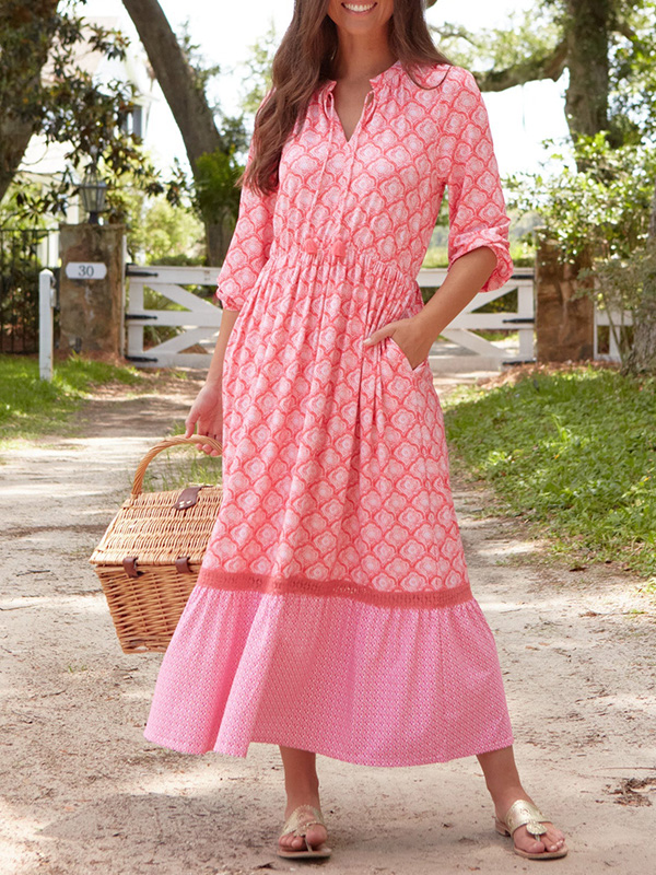 NEW🔥 V Neck Vintage Printed Dress$36.99 USD$69.90 USD