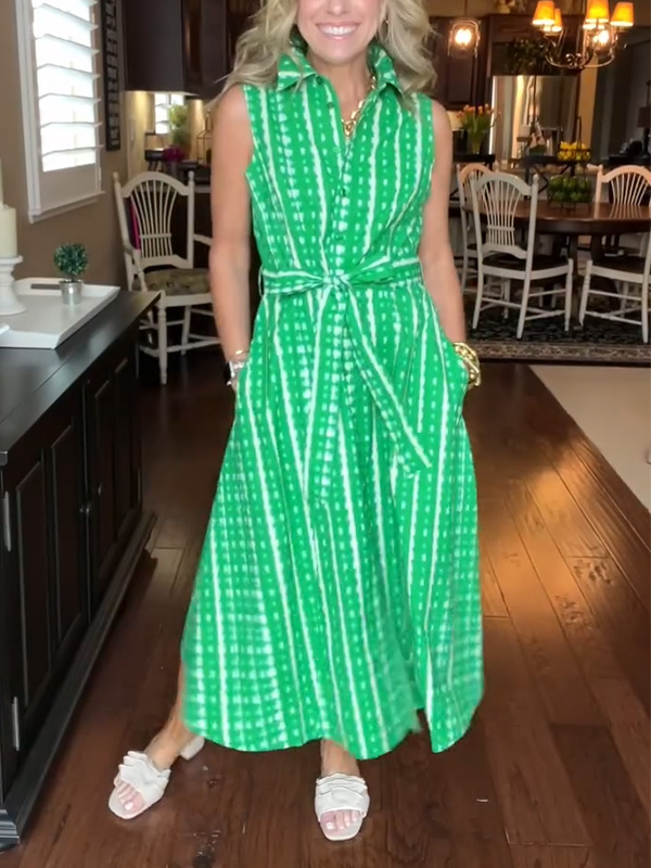 New🔥 Lapel Button Printed Waistband Dress$39.99 USD$79.98 USD