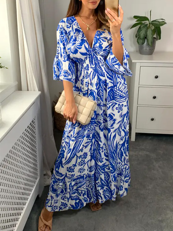NEW🔥 V Neck Vintage Printed Maxi Dress$42.99 USD$85.98 USD