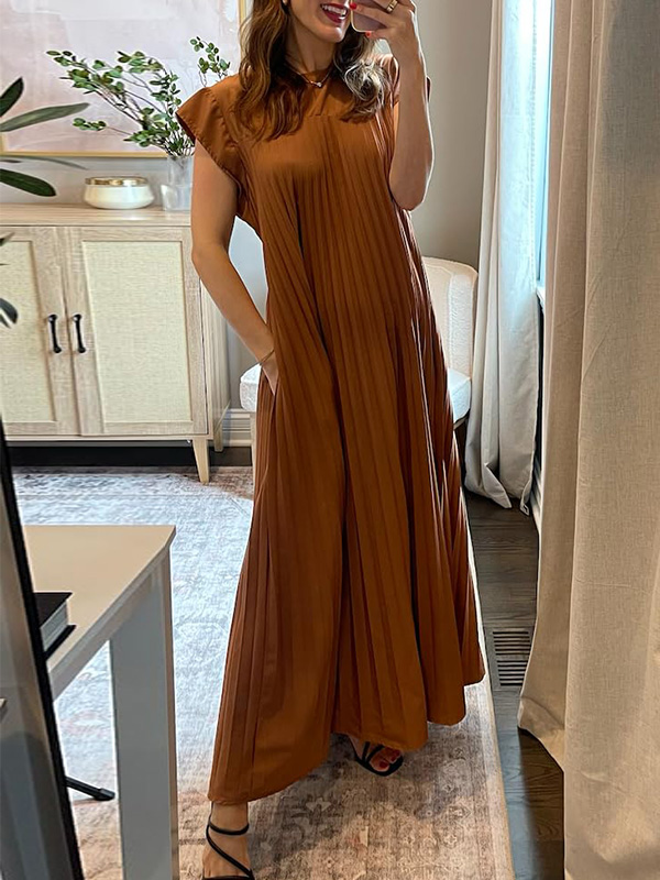 Timeless Elegance: Round Neck Casual Pleated Dress