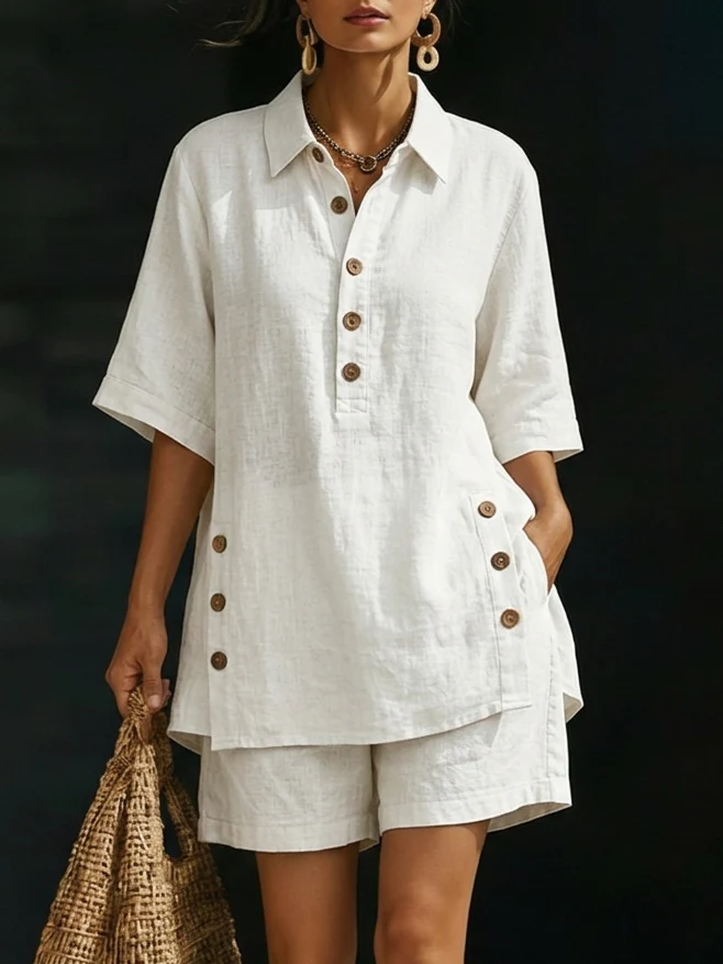 The loose-fitting button-up shirt paired with breathable shorts creates a casual yet stylish outfit that’s perfect for everyday wear. Whether you're heading out for brunch, beach vacations, or weekend errands, this set delivers comfort and elegance in one easy look.