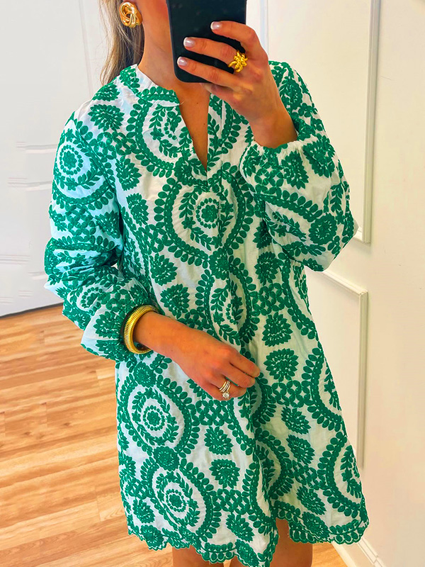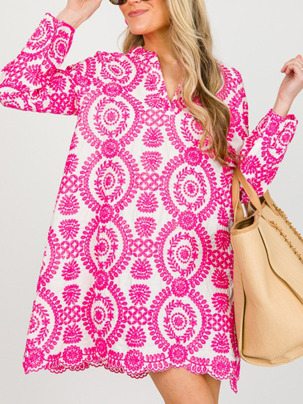 The Printed Lace Trim V Neck Shirt Dress is a versatile and stylish addition to any wardrobe. With its unique design elements and comfortable fit, it is perfect for both casual outings and more formal occasions. Embrace the effortless elegance of this dress and let it become your go-to piece for a variety of events.