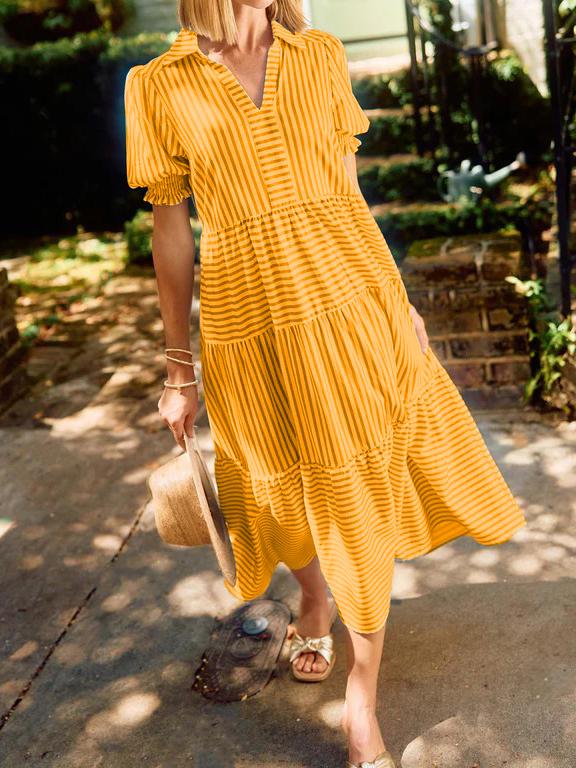 🔥 Two for $69.99 Only + free shipping🔥Special price of $37.99( Taxes included ) for a limited time, if the price goes back to$75.98 it means the event has ended!!! Don't miss out!The V-Neck Pleated Short Sleeve Striped Shirt Dress is a delightful blend of sophistication and sweetness that's perfect for any occasion. Falling gracefully at midi-length, this dress exudes timeless charm, making it an ideal choice for both casual outings and special events. The dress features a classic collar, adding a touch of elegance, while the smocked short puff sleeves provide a playful and feminine twist.Features:Featured pocketsPleated short sleevesFolded collarLayered skirtCottonWashing instructions:Machine washableMachine wash coldHang to dryIron if necessarySIZE CHART:🔒 100% Risk-Free Purchase🔥If you bought it and felt that it is not for you, don't worry. Just shoot us a message and we will make it right by offering you a replacement or refund. 100% Simple Risk-Free process.* LIMITED stock, Click ADD TO CART before stock runs out!