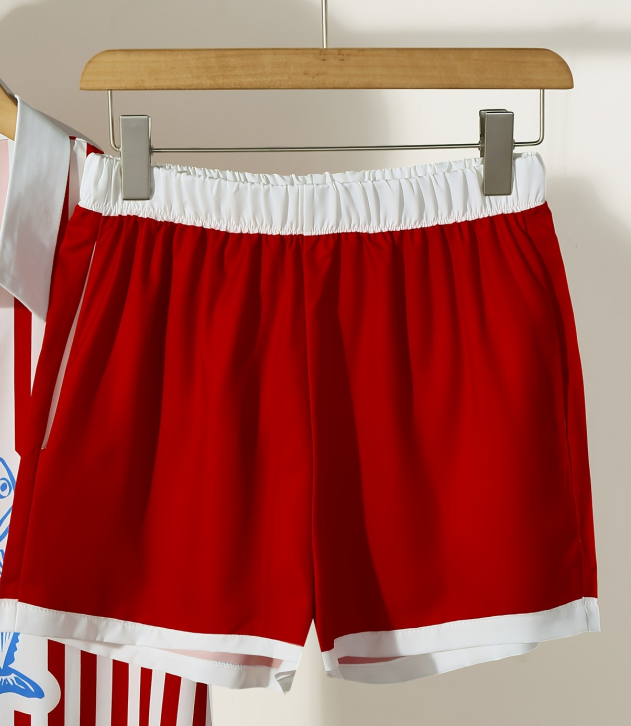 👖 Monochromatic Red Shorts + Contrasting White Trim