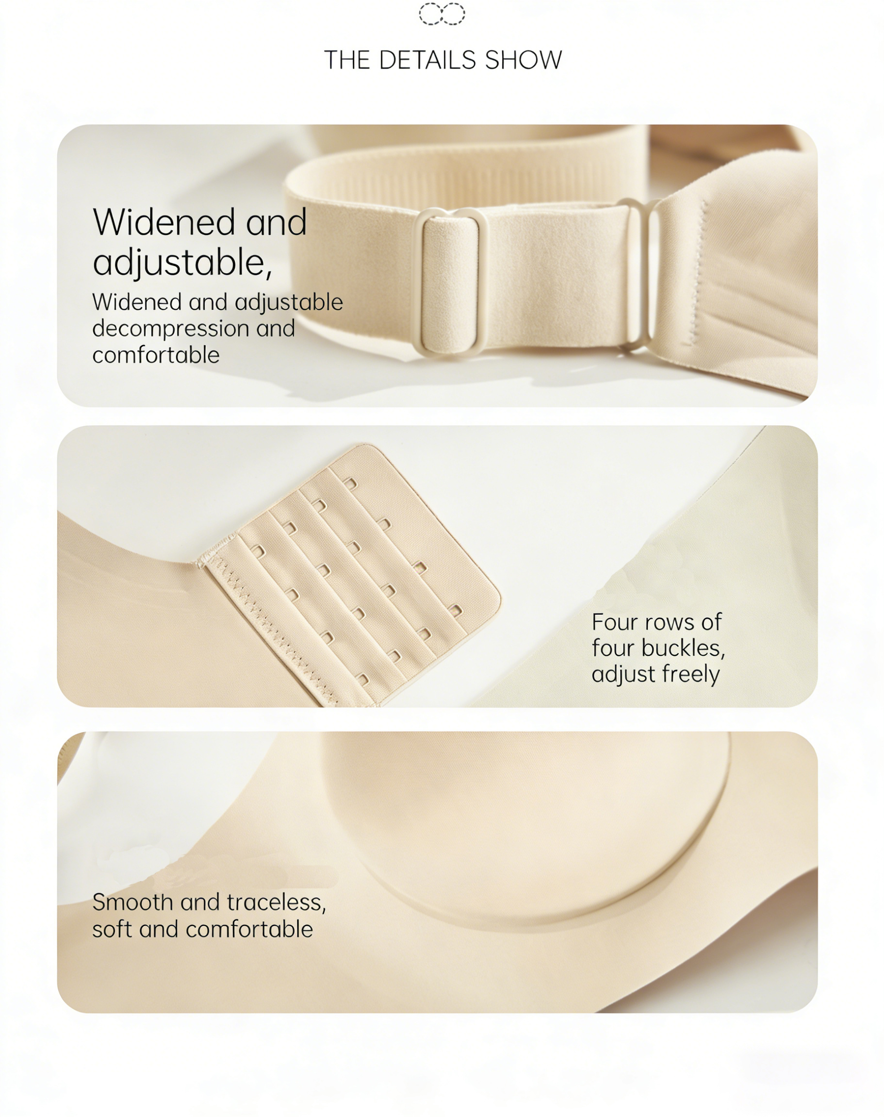 Featuring a deep V-neck and wire-free design, this lingerie allows you to effortlessly transition between a relaxed, figure-flattering everyday look and a refined, close-fitting style—a transformation that leaves absolutely no visual trace.