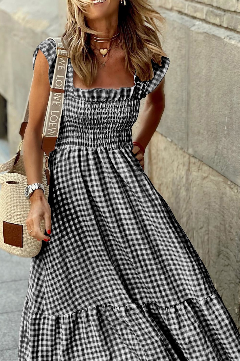 Style: A-line dress with flared skirt and spaghetti straps